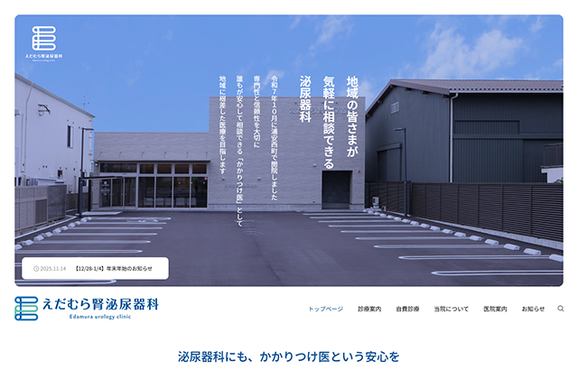 制作担当者からのコメント 新たに岡山市南区浦安西町に開院された「えだむら腎泌尿器科」様のホームページを制作しました。